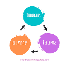 In Cognitive-Behavioral Therapy (CBT), the counselor works with the client to create greater awareness on how thoughts impact one’s feelings. These feelings impact one’s behaviors. If you change your thoughts, you can change how you feel, which changes what you do (for more information on CBT, you can visit https://www.apa.org/ptsd-guideline/patients-and-families/cognitive-behavioral).